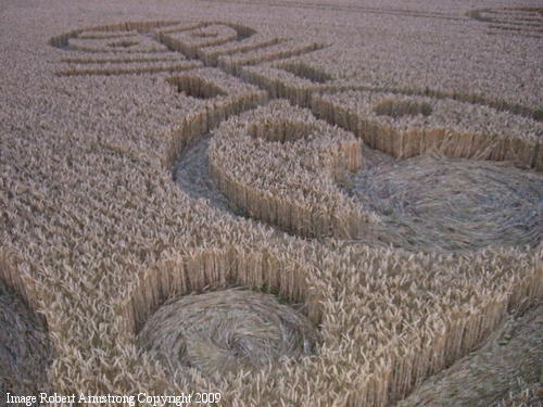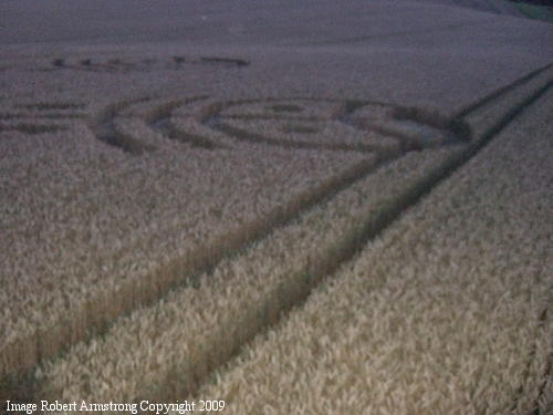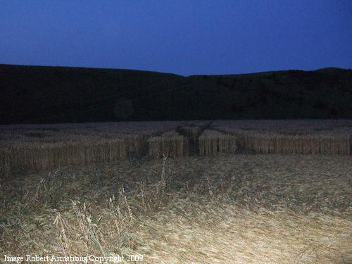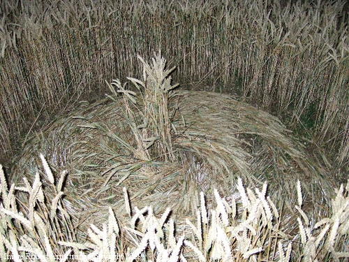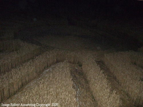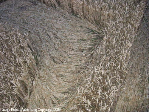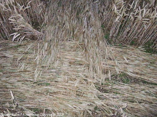 Crop damage, possibly caused by previous visitors. Stems bent just above