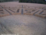 outlined circle, has a narrow 'basket weave' throughout, whilst the
