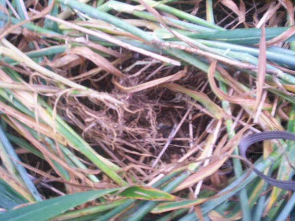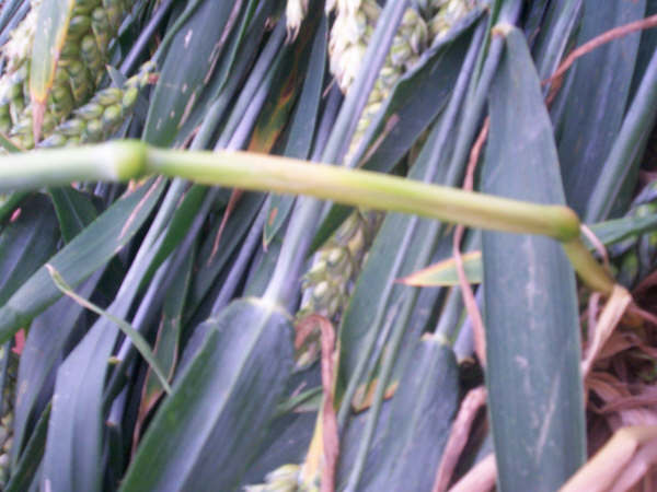 Mainly bent at the first node, any remaining standing crop is