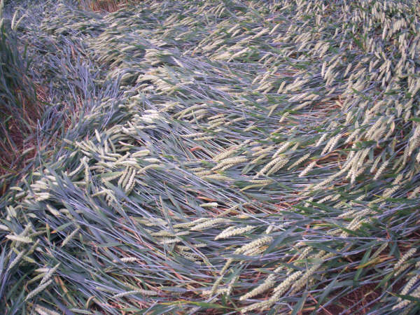 directional change, forming a neat banked up wave of peaked crop.