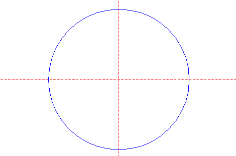 | Draw a circle. Draw and extend the horizontal and vertical centerlines. |