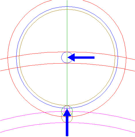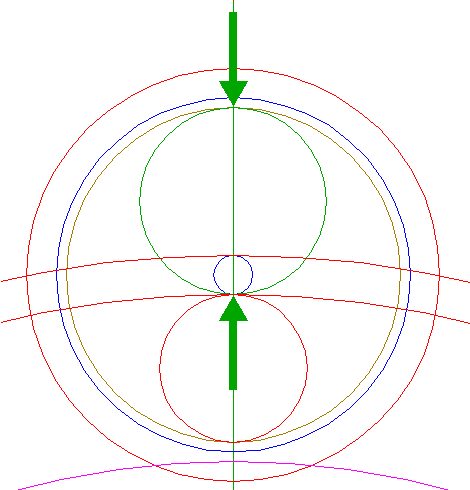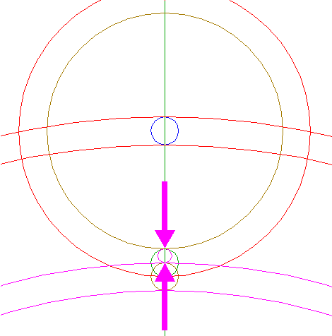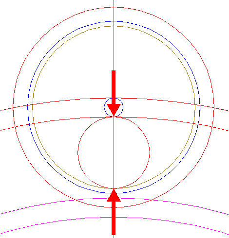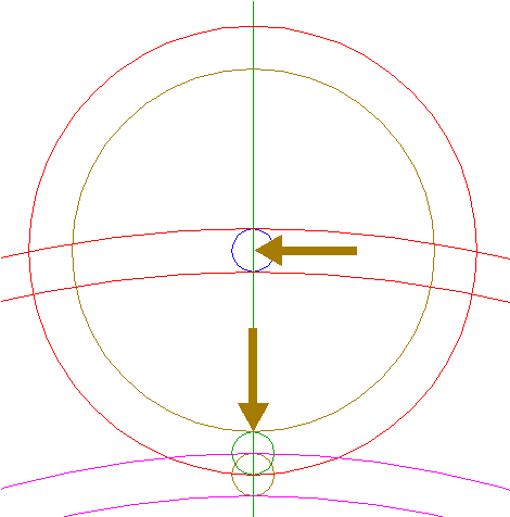 | Construct a "two-points" circle between the lower intersections of circles 26 and 29 with the vertical centerline. |