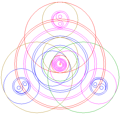 | Copy circle 19 two times, to the centers of circles 32 and 33. |