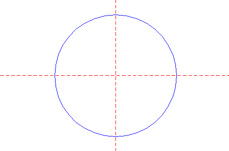 | Draw a circle. Draw and extend the horizontal and vertical centerlines. |