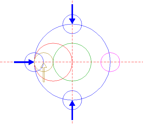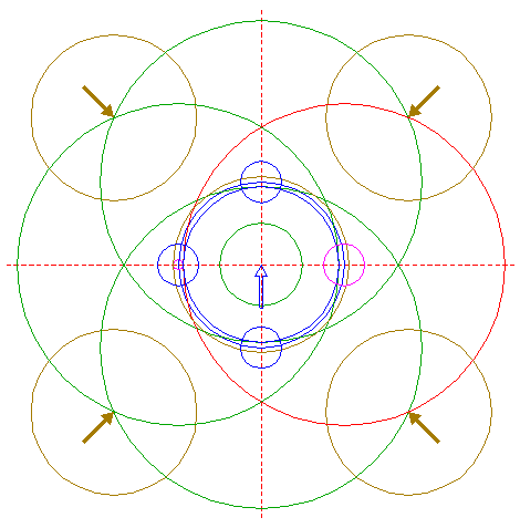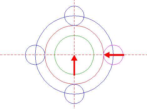 | Copy circle 4 to the righthand intersection of circle 1 and the horizontal centerline. |