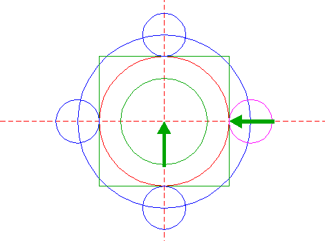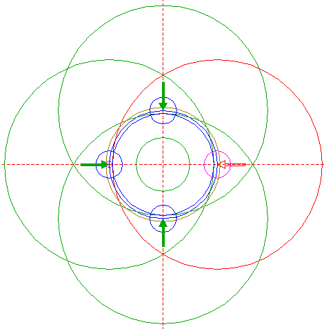 | Copy circle 4 three times, to the other intersections of circle 1 with the horizontal and vertical centerlines. |