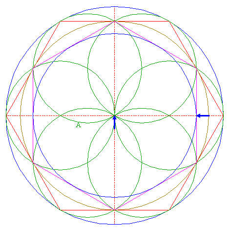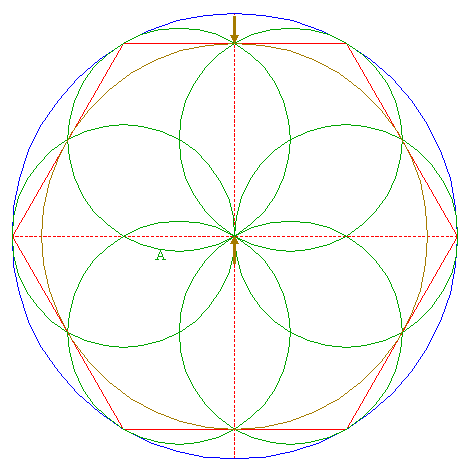 | Construct the inscribed hexagon of circle 8, pointing up.