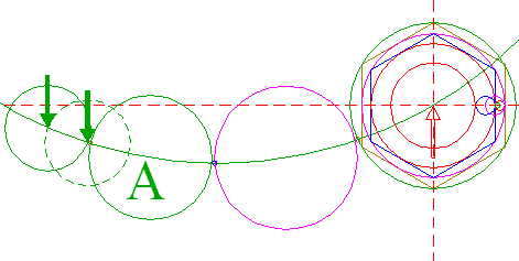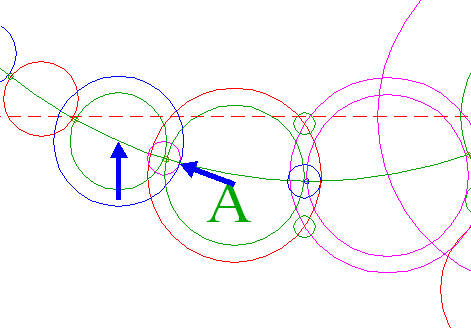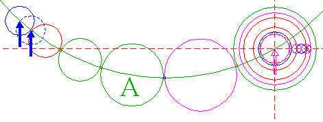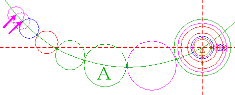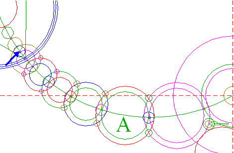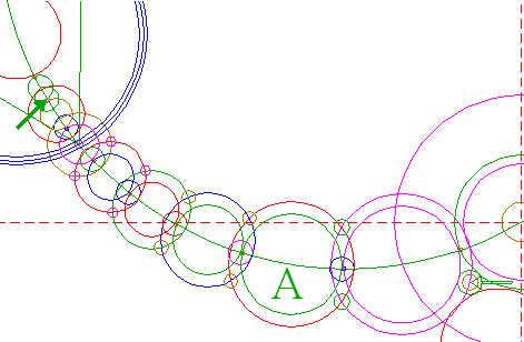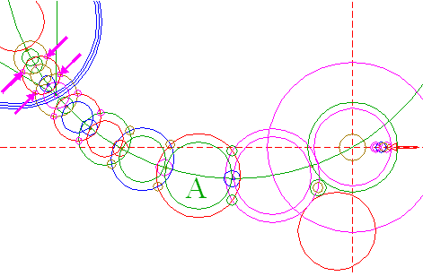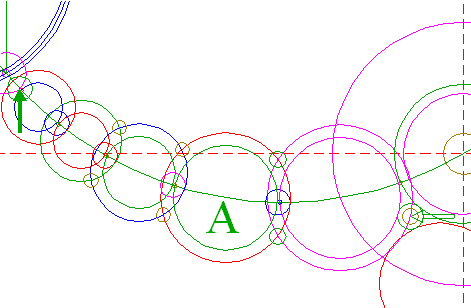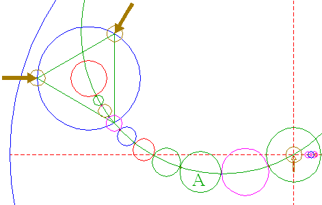 | Copy circle 45 to the center of circle 35, and move it to its own upper intersection with circle 3A.