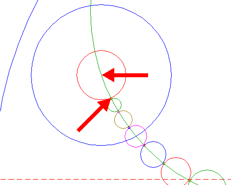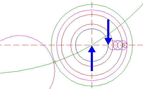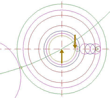 | Construct a circle centered at the righthand intersection of circle 30 and the horizontal centerline, tangent to circle 26 at the righthand side.