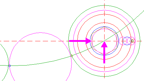 | Construct a "two-points" circle between the center of circle 12 and its lefthand intersection with the horizontal centerline.