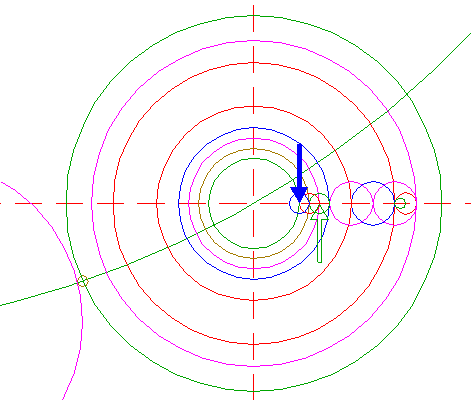 | Copy circle 33 to the lefthand intersection of circle 37 and the horizontal centerline.