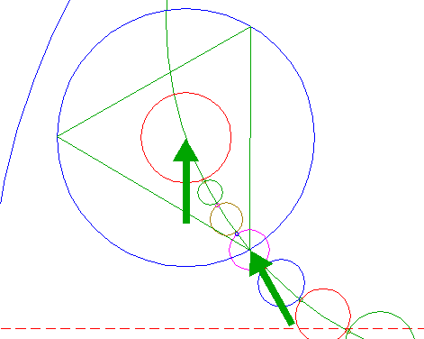 | Copy circle 34 two times, to the other two angular points of triangle 48.