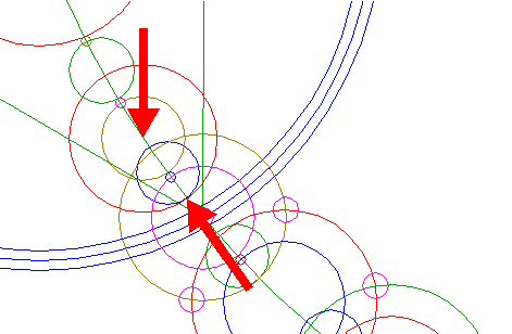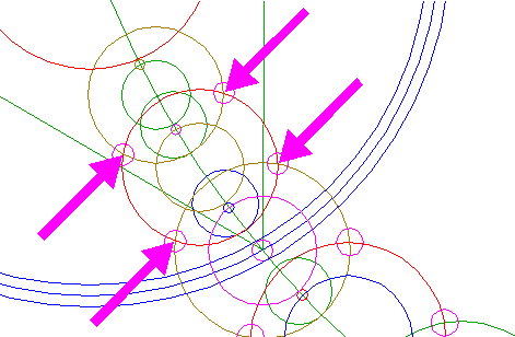 | Copy circle 42 to the upper intersection of circles 40 and 3A, and move it to its own corresponding intersection.