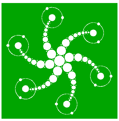 | Copy circle 59 four times, to the mutual intersections of circles 57, 61 and 63.