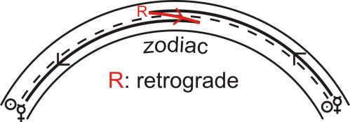 moves retrograde (backwards) through the zodiac. The drawing shows the
