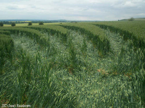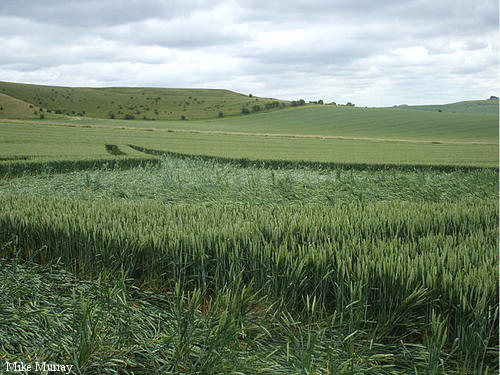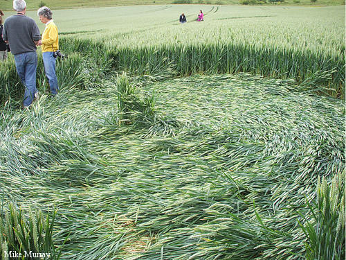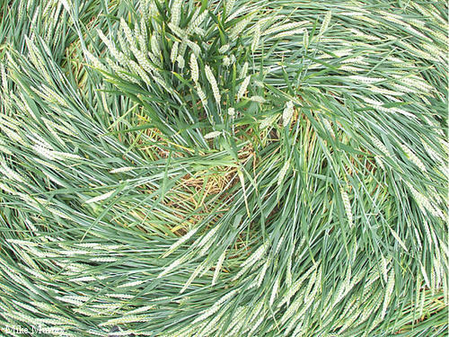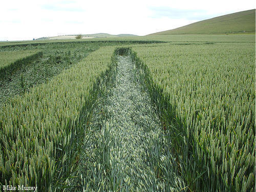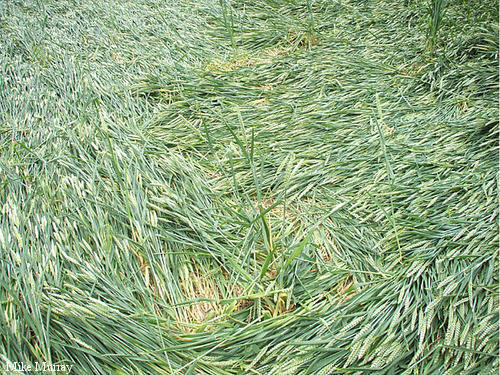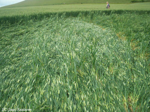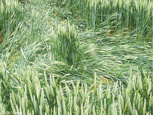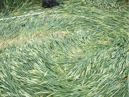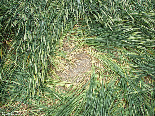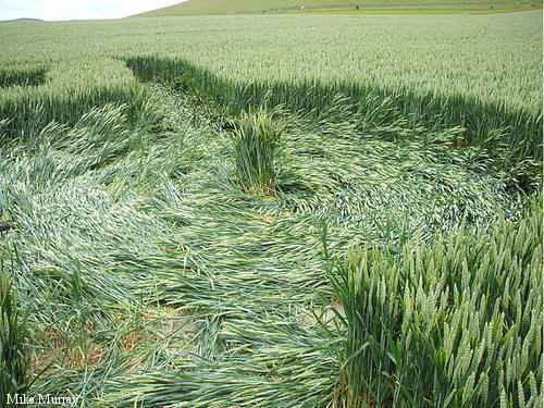 2)The lay of the wheat is clockwise around some of the