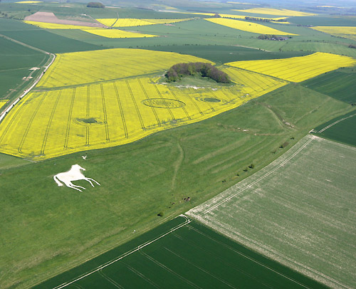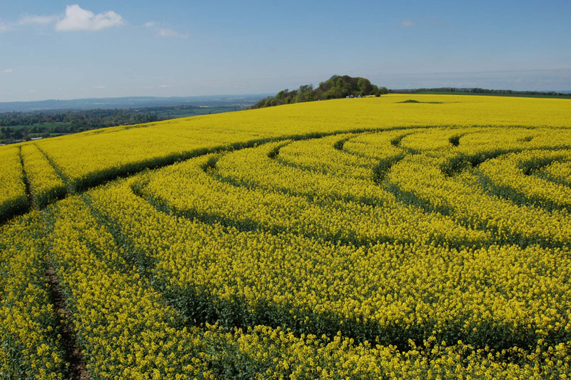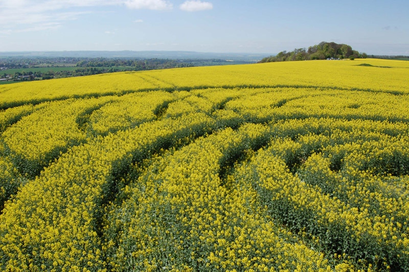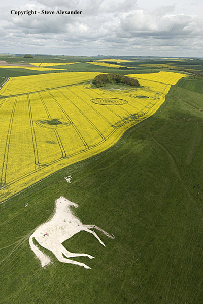 This new circle discovered this morning while Olivier (member of the WCCSG team) was flying. It's above the Roundway Hill white horse near Devizes. In rape about 200ft.