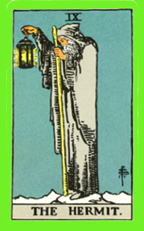 Tarot deck. The Hermit symbolizes initiation, the end of the cycle