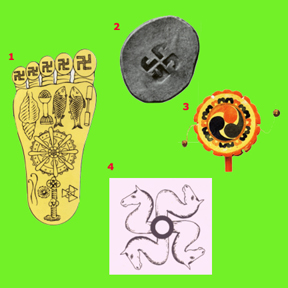 – an auspicious sign on Buddha’s foot. 2. Ancient swastika on
