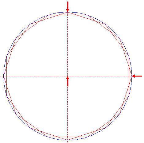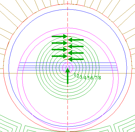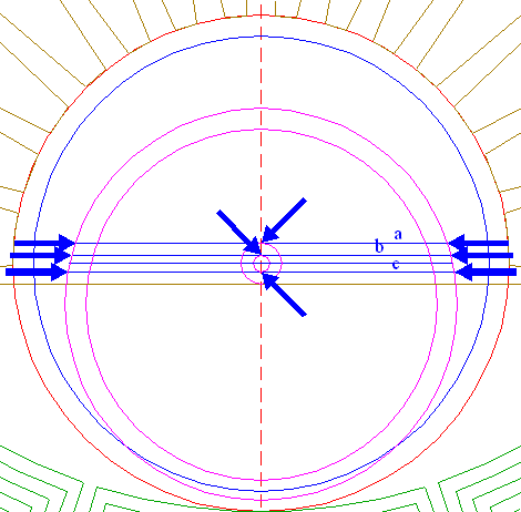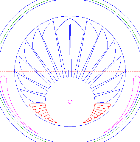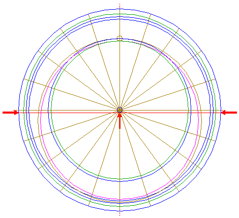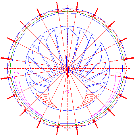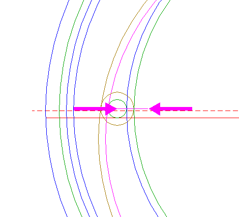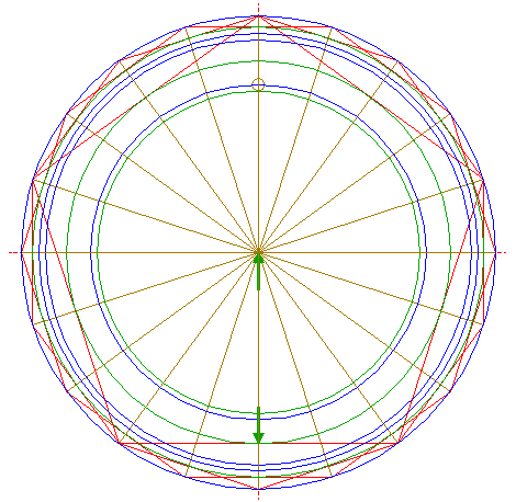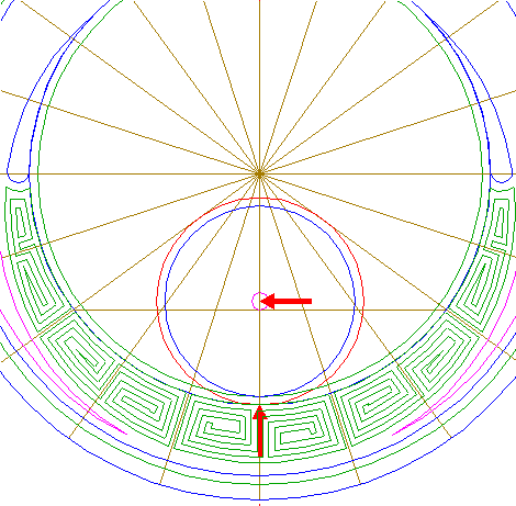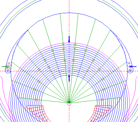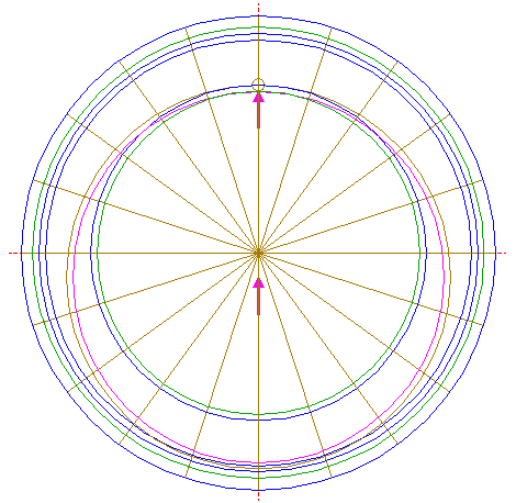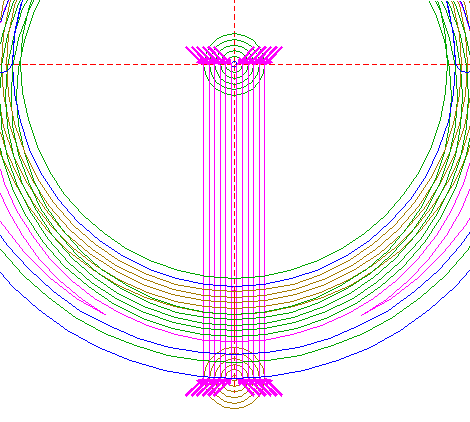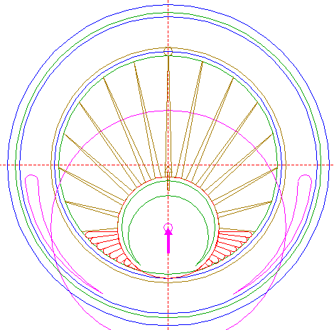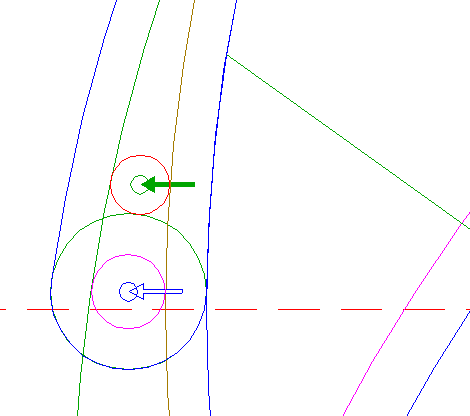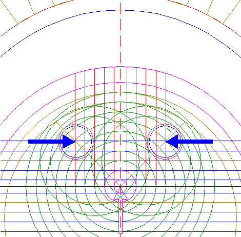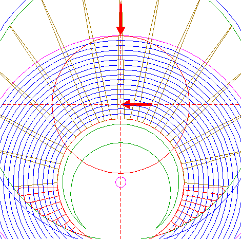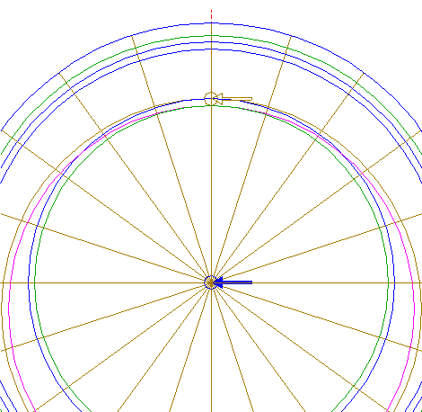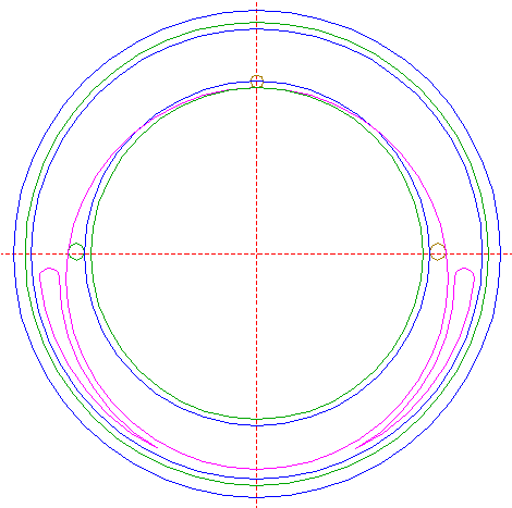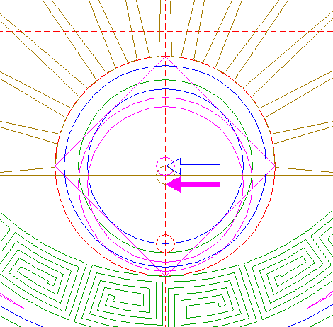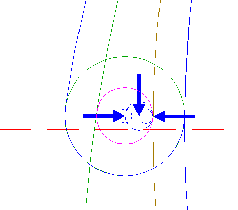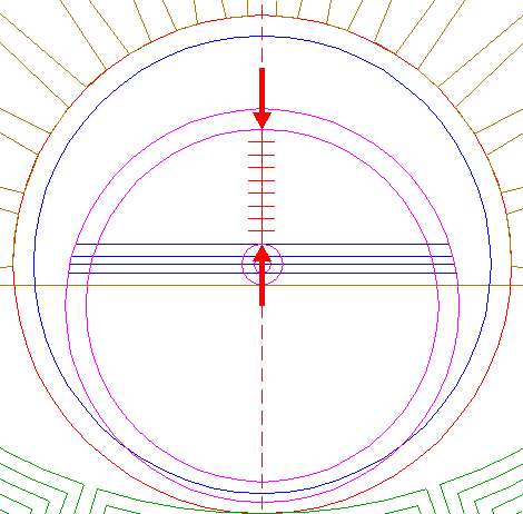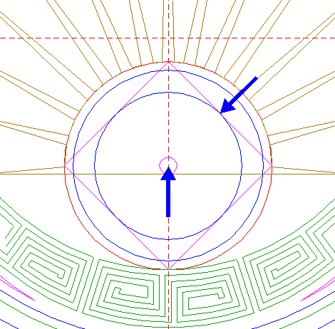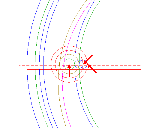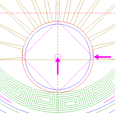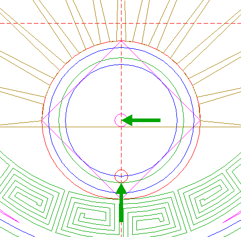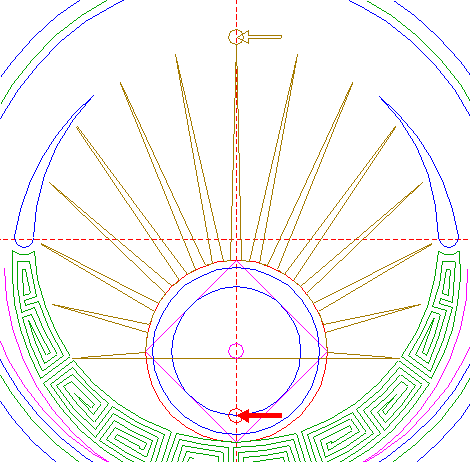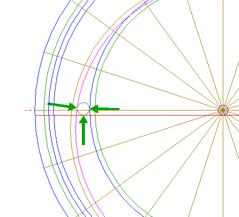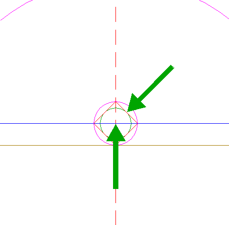 | Construct a "two-points" circle (defined by the end-points of a centerline) between the lower intersections of circle 6 and innermost circle 29 with the vertical centerline. |
