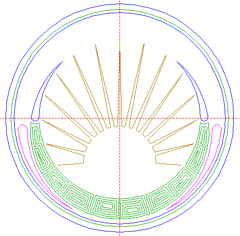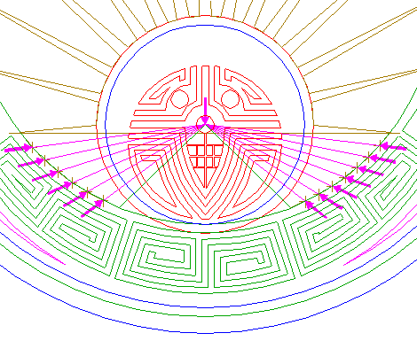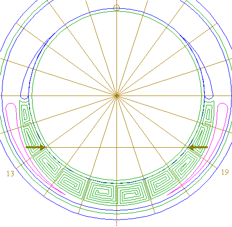 | Copy circles 90 and 91 nineteen times, to the centers of circles 89. |