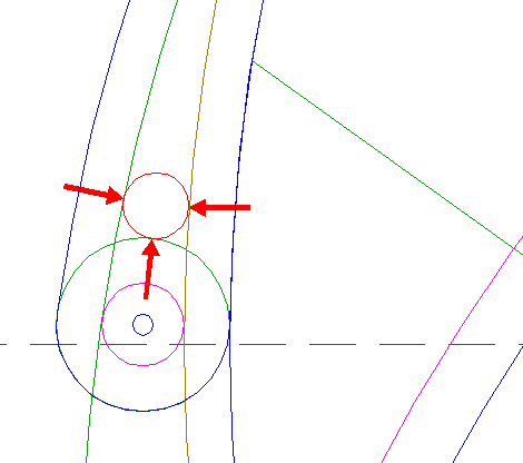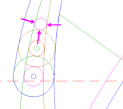 | Copy circle 13 to the center of circle 9, and move it to its own lower intersection with the vertical centerline. |