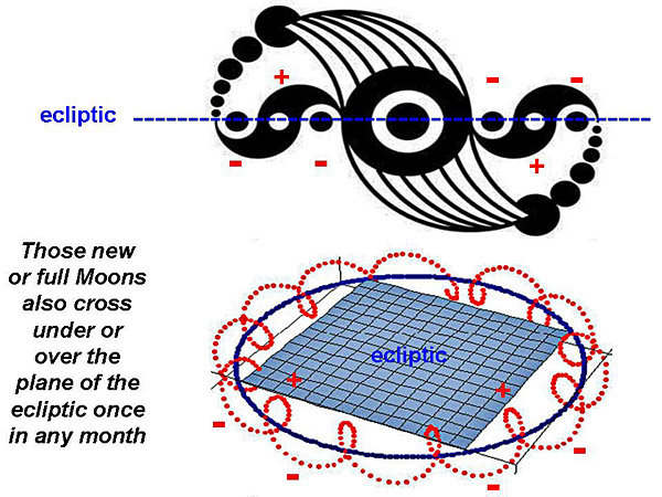 new or full Moons will cross over or under the plane of the solar