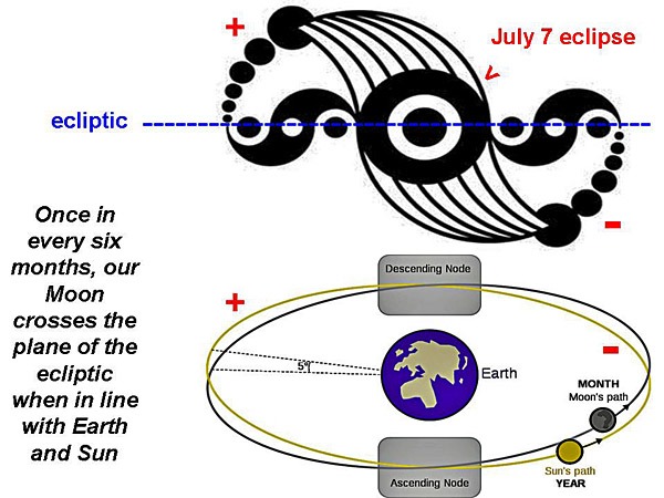produce solar or lunar eclipses respectively, on a six-month time