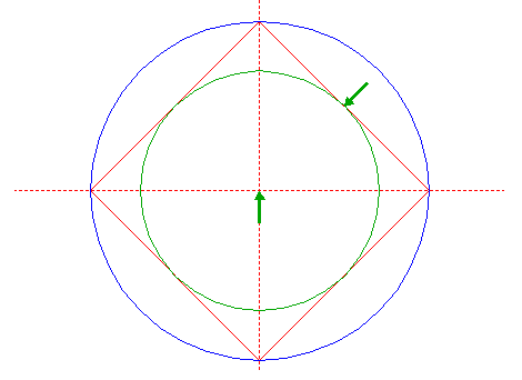 | Construct the inscribed square of circle 1, pointing to the right.