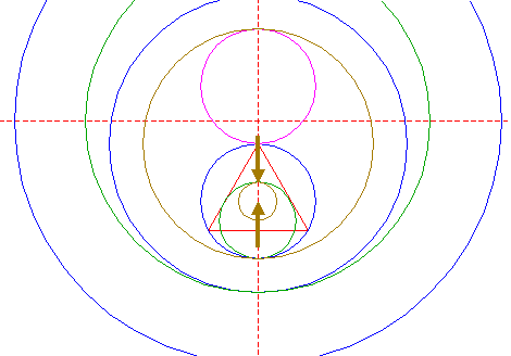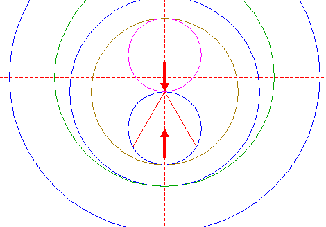 | Construct a "two-points" circle between the lower intersections of circle 11 and triangle 12 with the vertical centerline.