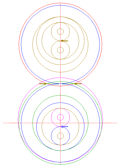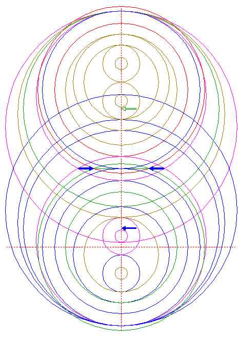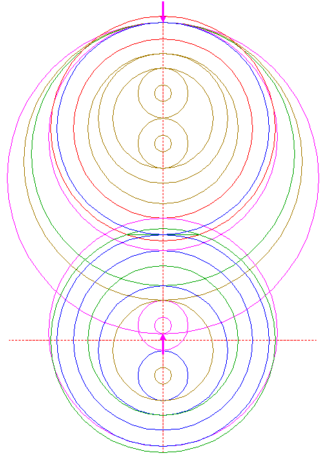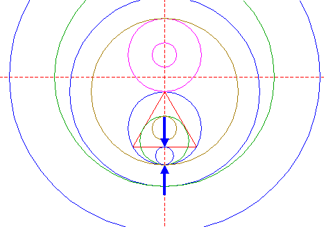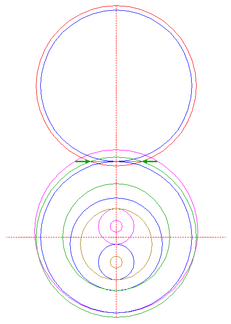 | Construct a "two-points" circle between the upper intersections of circles 6 and 21 with the vertical centerline.