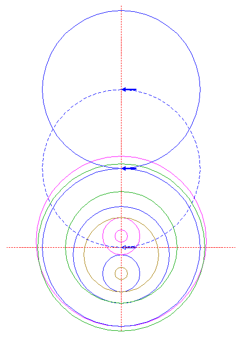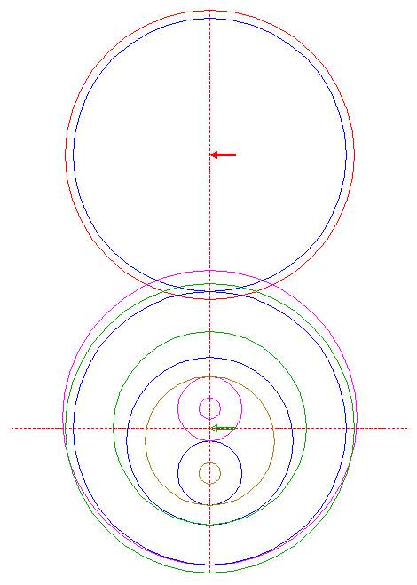 | Construct a "two-points" circle between the center of circle 9 and its upper intersection with the vertical centerline.