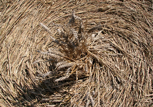 bunches of standing crop intricately woven into each other. It