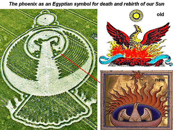 ancient Egyptian myth, where a new, young phoenix bird (upper