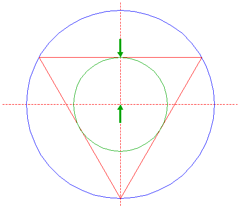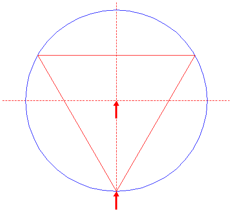 | Construct the inscribed equilateral triangle of circle 1, pointing down. |