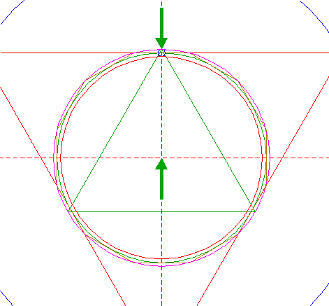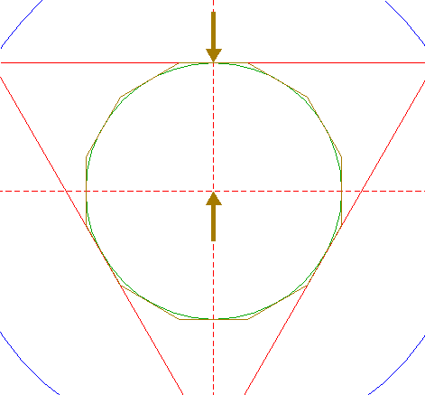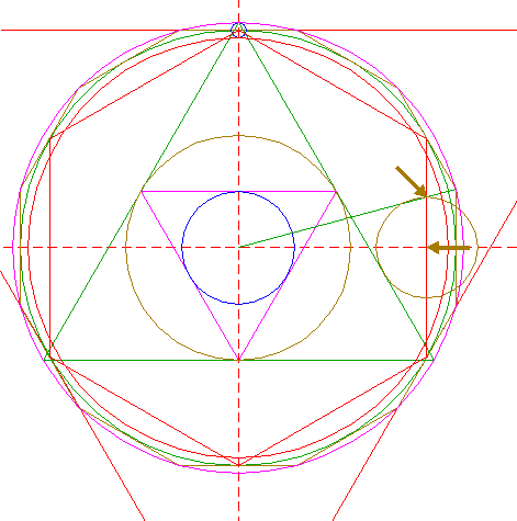 | Construct the circumscribed dodecagon (regular twelve-sided polygon) of circle 3, with one side up (its mid-point at the vertical centerline), as shown. |