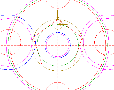 | Construct a circle centered at the upper intersection of circle 5 and the vertical centerline, tangent to circle 7 at the upper side. |