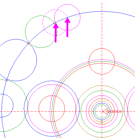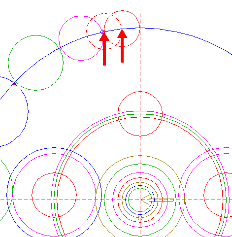 | Copy circle 28 to the upper intersection of circle 40 and circle 1, and move this circle (copy and delete original) to its own corresponding intersection. |