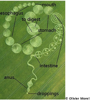 magnetic field symbols – show two halves of crop circle’ center (Figure