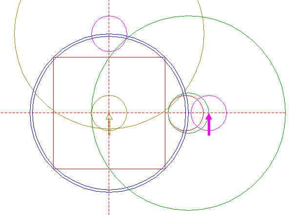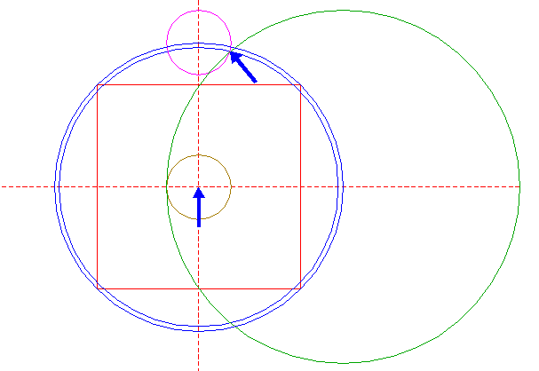 | Construct a circle concentric to circle 3, passing through the lower intersection of circle 18 and the vertical centerline. | ||