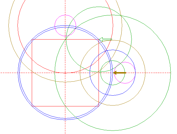 | Copy circle 4 to the righthand intersection of circle 8 and the horizontal centerline. | ||