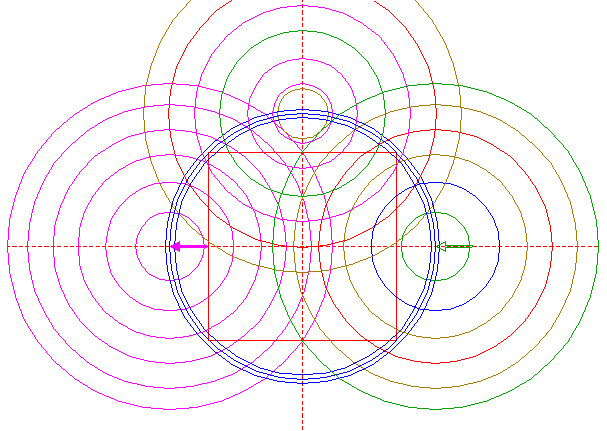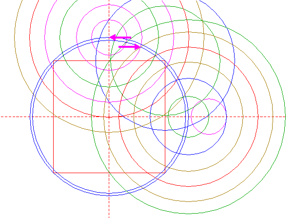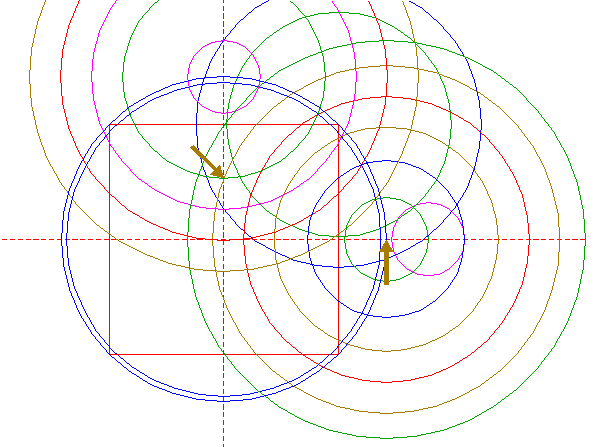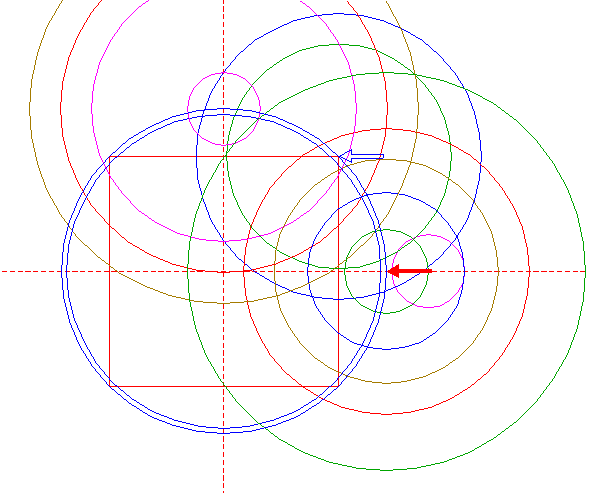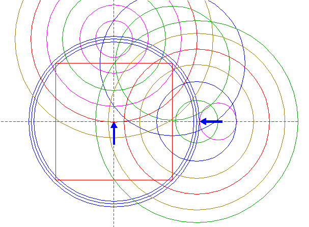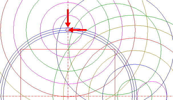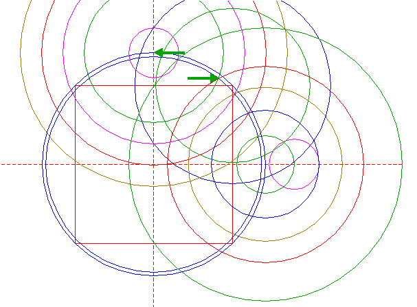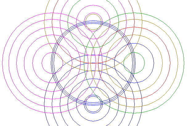| Copy circles 3, 8, 11, 14, 17 and 19, to the lefthand intersection of circle 1 and the horizontal centerline. | ||