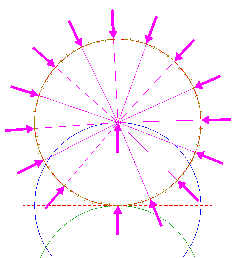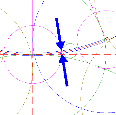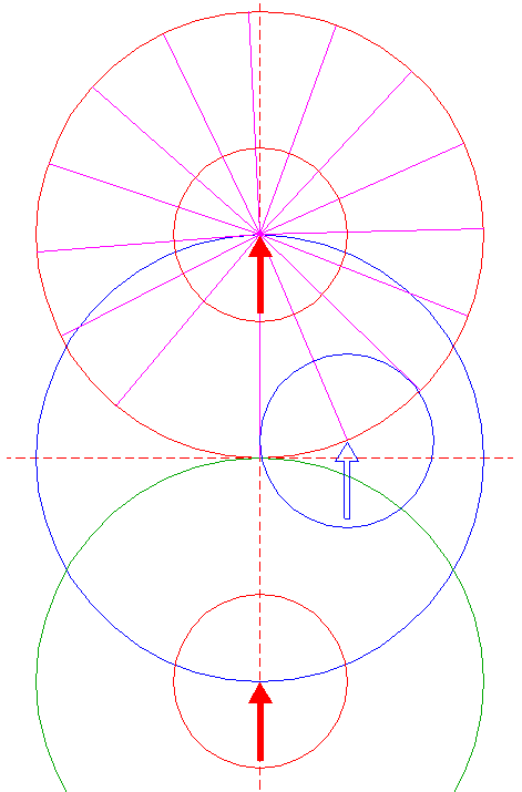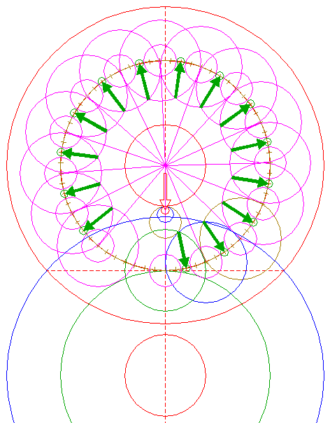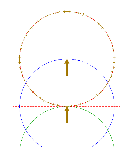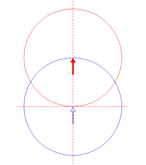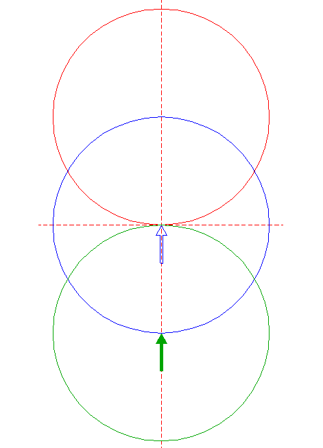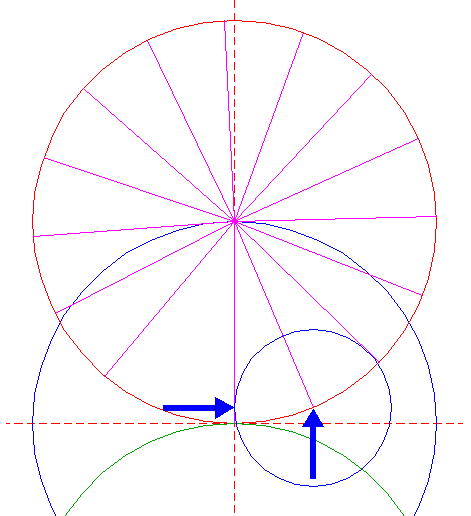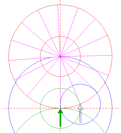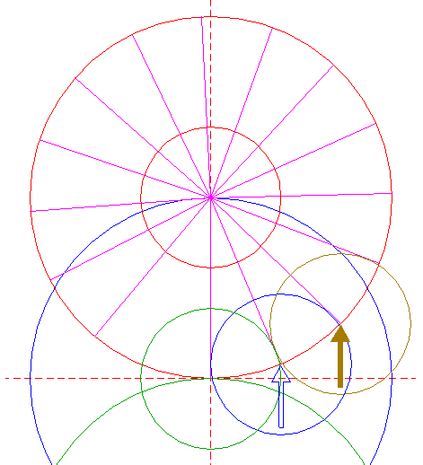 | Construct a "two-points" circle between the center of circle 16 and its upper intersection with the vertical centerline. |
