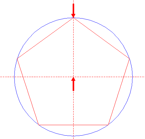 | Construct the circumscribed pentagon of circle 9, pointing down. |