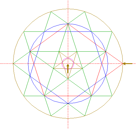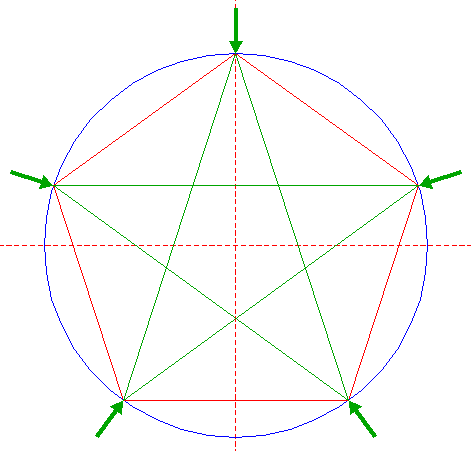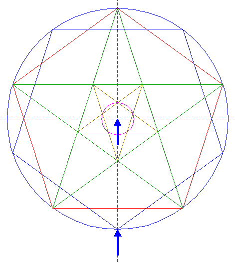 | Construct the inscribed pentagram of circle 5, pointing up. |