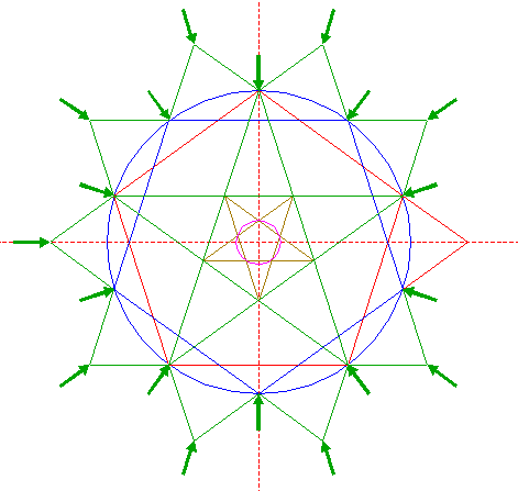 | Repeat steps 13 and 14 for all corresponding pairs of sides of pentagram 15. |