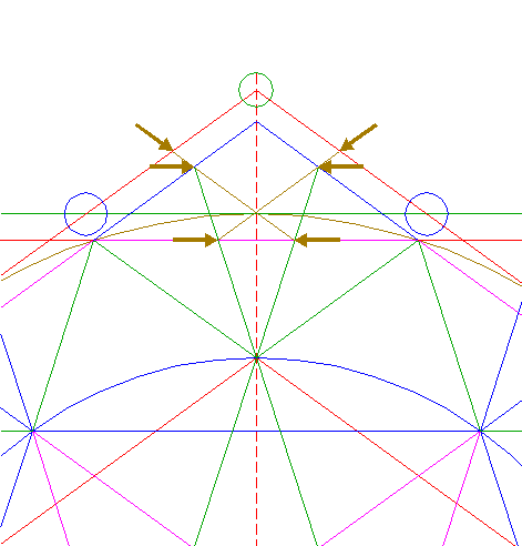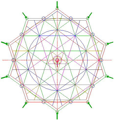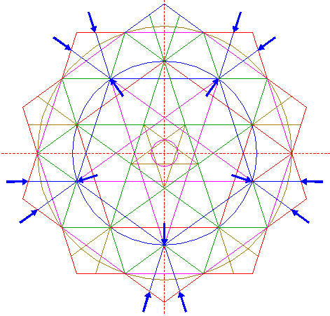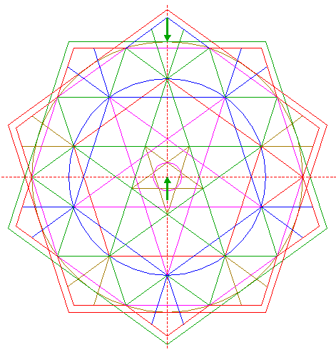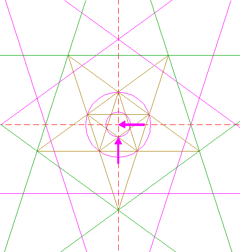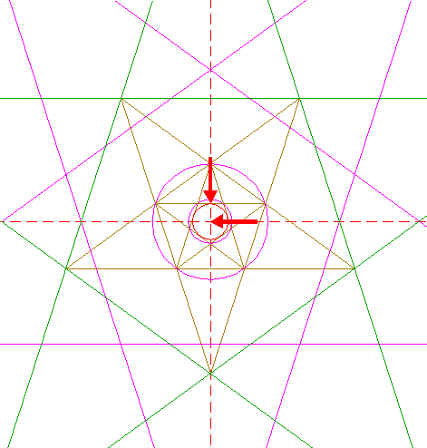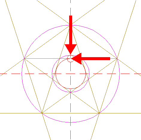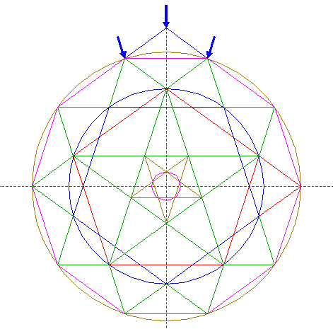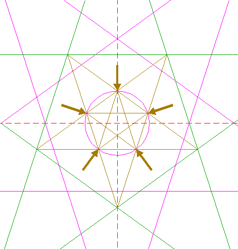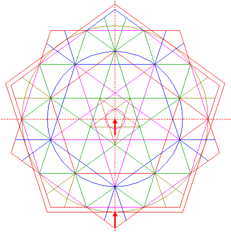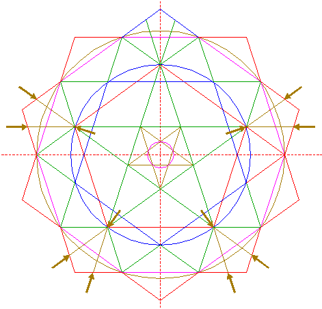 | Extend the upper lefthand and righthand sides of decagon 10, until they intersect (at the vertical centerline). |
