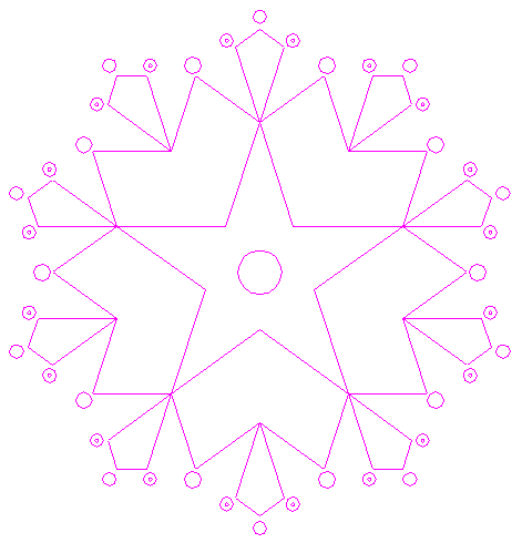 | Copy circle 20 ten times, to the intersections of pentagons 17 and 18. |