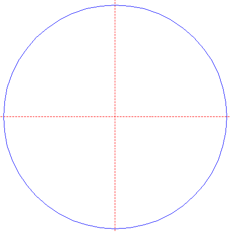 | Draw a circle. Draw and extend the horizontal and vertical centerlines. |