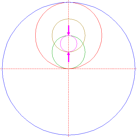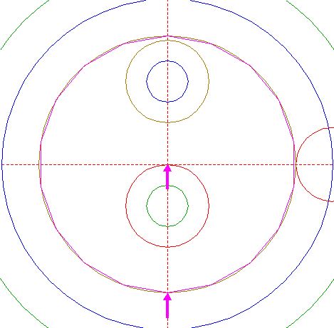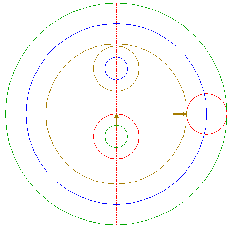 | Copy circle 3 to the center of circle 1, and move it (copy and delete original) to its own lower intersection with the vertical centerline. |